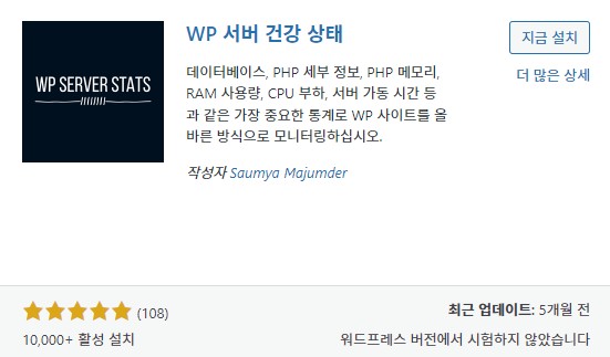 'WP Server Health Stats'와 같은 플러그인을 사용하면 서버 내 폴더와 파일의 용량을 시각적으로 확인할 수 있습니다. 이 플러그인을 통해 이미지 최적화 후 얼마나 많은 공간이 절약되었는지 손쉽게 파악할 수 있습니다.